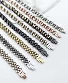 این محصول از آلیاژ مس با کیفیت ساخته شده و با آبکاری چندلایه ژوپینگ پوشش داده شده است که موجب ثبات رنگ بالا، درخشندگی ماندگار و مقاومت در برابر کدر شدن و تغییر رنگ میشود. طراحی بندها بهصورت یکدست و منظم انجام شده و حس یک اکسسوری لوکس و خوشساخت را منتقل میکند.