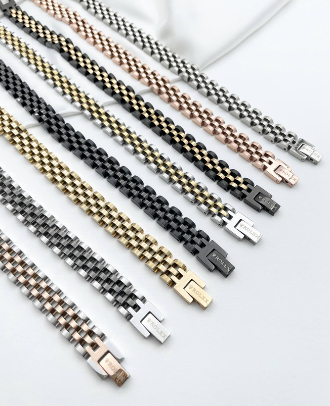 دستبند طرح رولکس ژوپینگ با الهام از طراحی ماندگار و لوکس بند ساعت رولکس، یک انتخاب خاص و چشمنواز برای افرادی است که به استایل شیک و مدرن اهمیت میدهند. این دستبند با ظاهر براق و ساختار دقیق، جلوهای لوکس به استایل روزمره و مجلسی میبخشد.