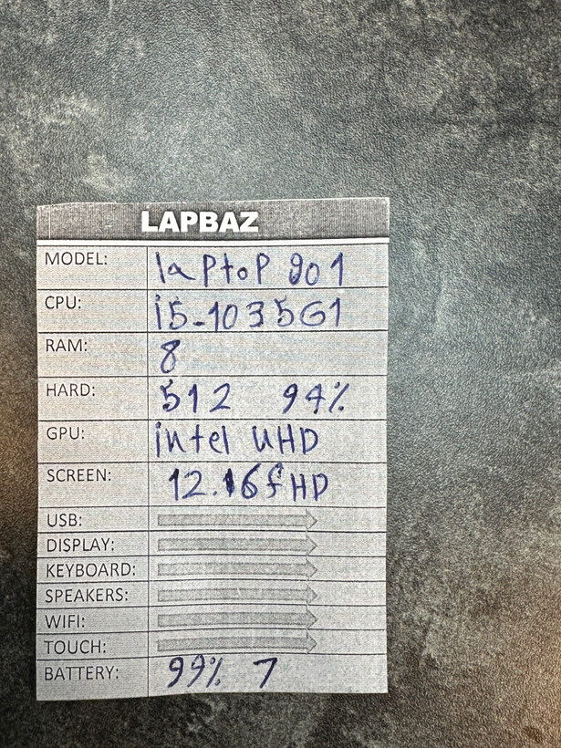 این دستگاه به پردازنده Intel Core i5‑1035G1 مجهز شده که در کنار 8 گیگابایت رم، عملکردی روان و بدون لگ را در اجرای ویندوز، نرمافزارهای اداری، مرور اینترنت و کارهای آموزشی فراهم میکند. حافظه 512 گیگابایت SSD با سلامت 94٪، سرعت بوت و اجرای برنامهها را بهطور محسوسی افزایش میدهد.