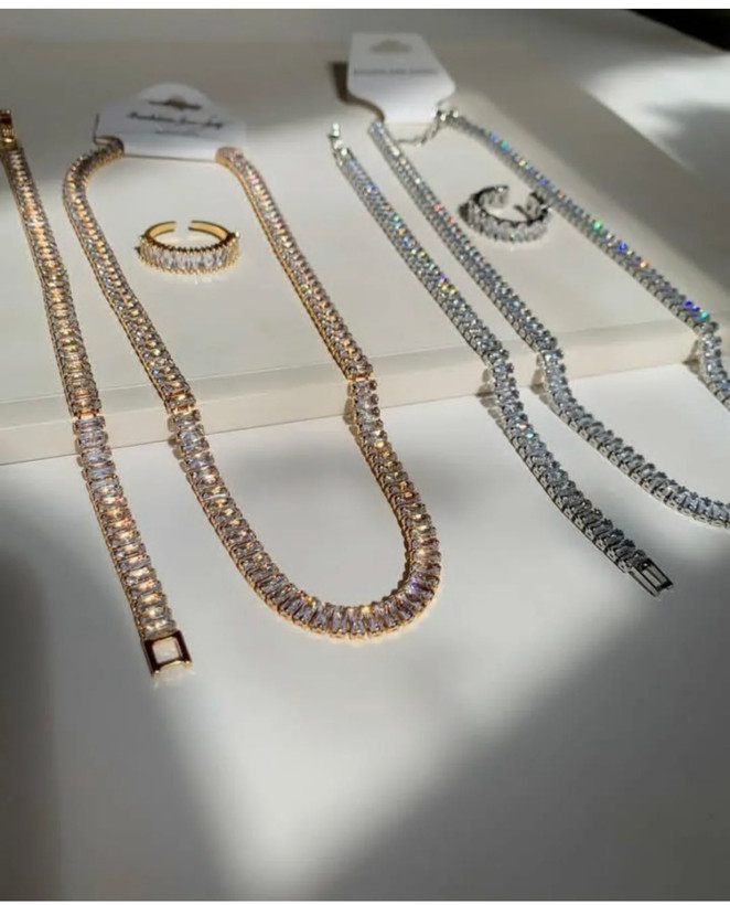 ست زیورآلات تِنیسی یکی از محبوبترین و لوکسترین سبکهای زیورآلات است که با چیدمان نگینهای ریز و درخشان بهصورت ردیفی و منظم، جلوهای بسیار شیک و چشمنواز ایجاد میکند. این ست با طراحی کلاسیک و همیشگی خود، انتخابی ایدهآل برای استفاده در مجالس، مهمانیها و استایلهای رسمی و نیمهرسمی محسوب میشود.