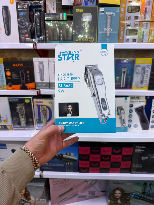 ماشین اصلاح مو Winning Star مدل ST-6532، شارژی و ضدآب با توان مناسب، همراه ۴ شانه سایز مختلف، برس و روغن. طراحی ارگونومیک، مناسب استفاده خانگی برای اصلاح سر و بدن. برند اقتصادی با کیفیت قابل قبول.