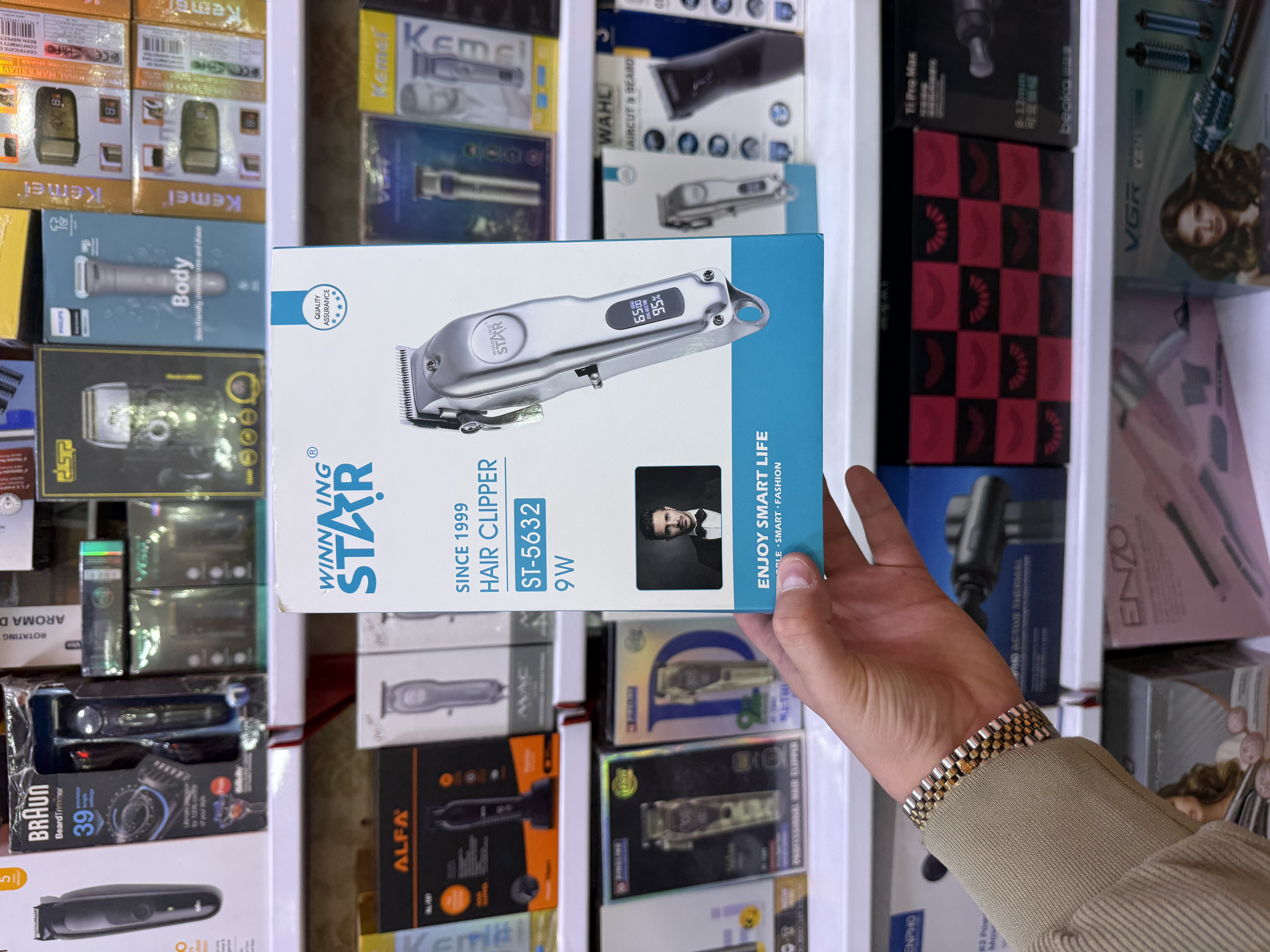ماشین اصلاح مو Winning Star مدل ST-6532، شارژی و ضدآب با توان مناسب، همراه ۴ شانه سایز مختلف، برس و روغن. طراحی ارگونومیک، مناسب استفاده خانگی برای اصلاح سر و بدن. برند اقتصادی با کیفیت قابل قبول.